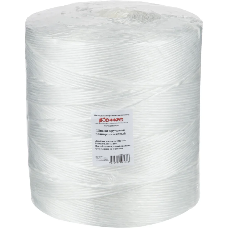 Крученый полипропиленовый шпагат обладает повышенной прочностью и устойчивостью, может быть использован для упаковки и транспортировки тяжелых грузов. Устойчив к изгибам и изломам, не разлагается в условиях повышенной влажности. Полипропилен экологически безопасный материал, может применяться для упаковки продуктов питания. В бобине 5 кг шпагата, длина намотки 1515 м.