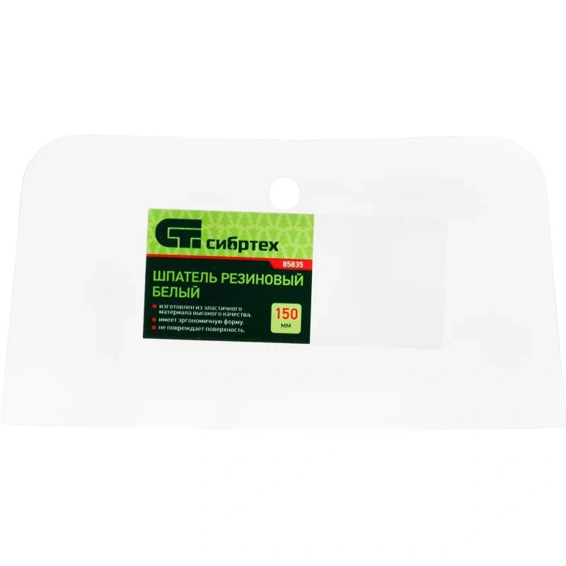 Шпатель, белая резина, 150 мм Россия Сибртех. Шпатель резиновый применяется при проведении финишных работ для затирки межплиточных швов. Изготовлен из белой резины, которая не оставляет следов и царапин на поверхности. Гибкость и мягкость шпателя позволяют максимально эффективно и аккуратно заполнять затиркой швы. Особенности: Эластичный материал высокого качества. Эргономичная форма. Не повреждает поверхность. Срок годности не ограничен.