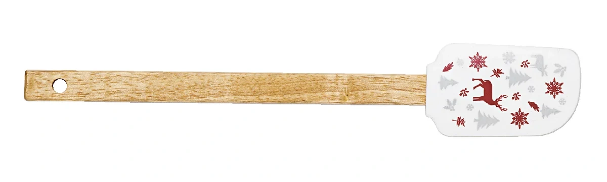 Шпатель X-mas кондитерский, 30 см выполнен из силикона, а ручка из качественного и долговечного пластика. Чаще всего его используют в кондитерском деле при приготовлении кремов и нанесении их на торт. Силикон в красном цвете имеет зимний орнамент. Срок его годности не ограничен. Этот инструмент очень помогает в приготовлении и декорировании различных кондитерских изделий. Многофункциональный, практичный и комфортный в пользовании аксессуар относится к одному из базовых инструментов кондитера. Он может использоваться не только для нанесения и выравнивания крема, перекладывания отрезанных кусочков на тарелку, переворачивания оладий и сырников, но и других манипуляций. Длинная ручка позволяет легко удерживать его в руке. После использования его достаточно будет очистить от загрязнений под проточной теплой водой с добавлением жидкого моющего средства.