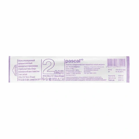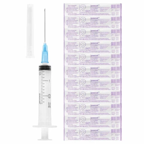 Шприцы одноразовые Pascal 3-х компонентные 2мл, игла 0,6х30 - 23G, 100шт, пакет