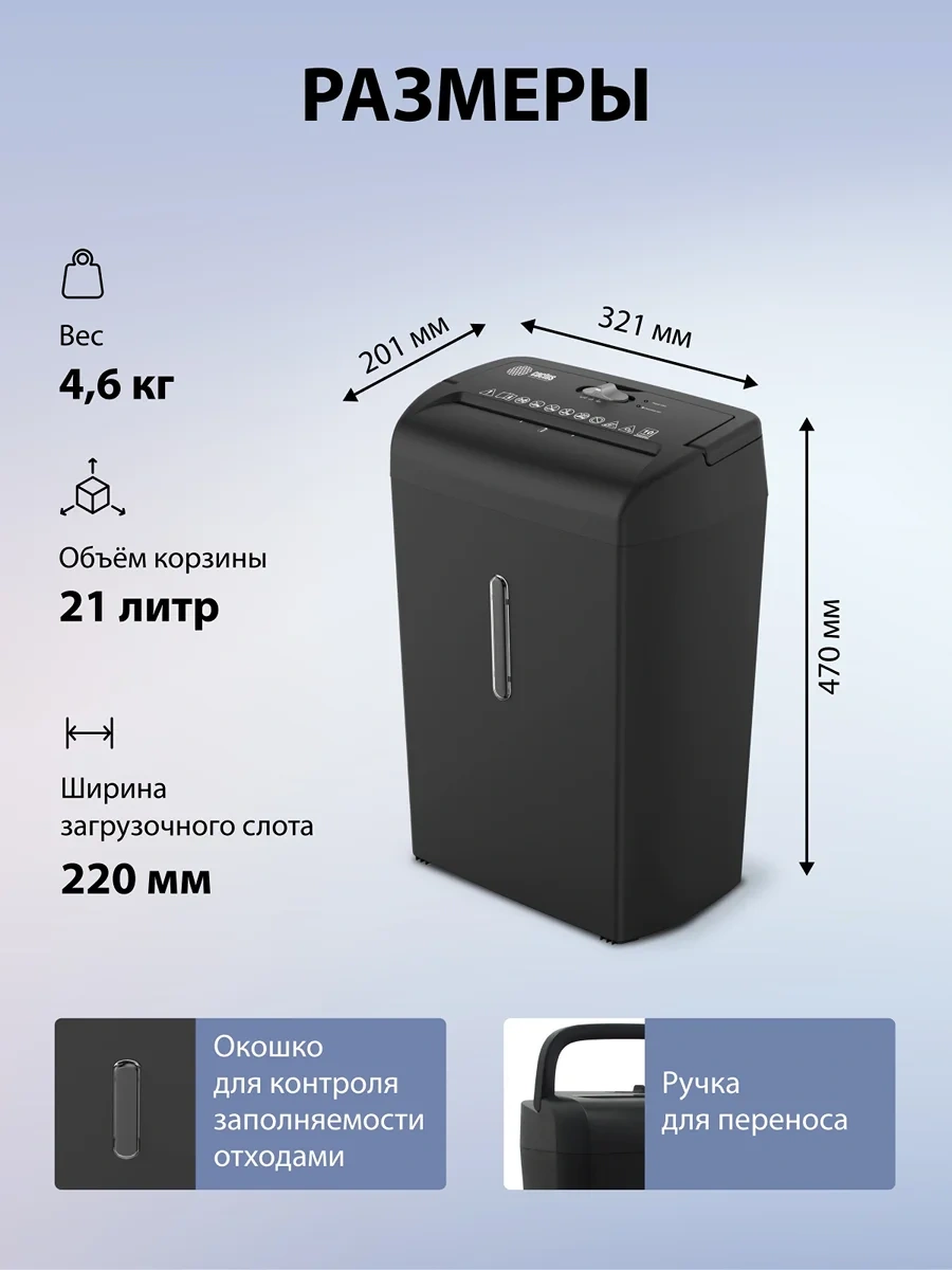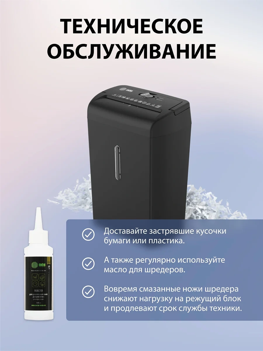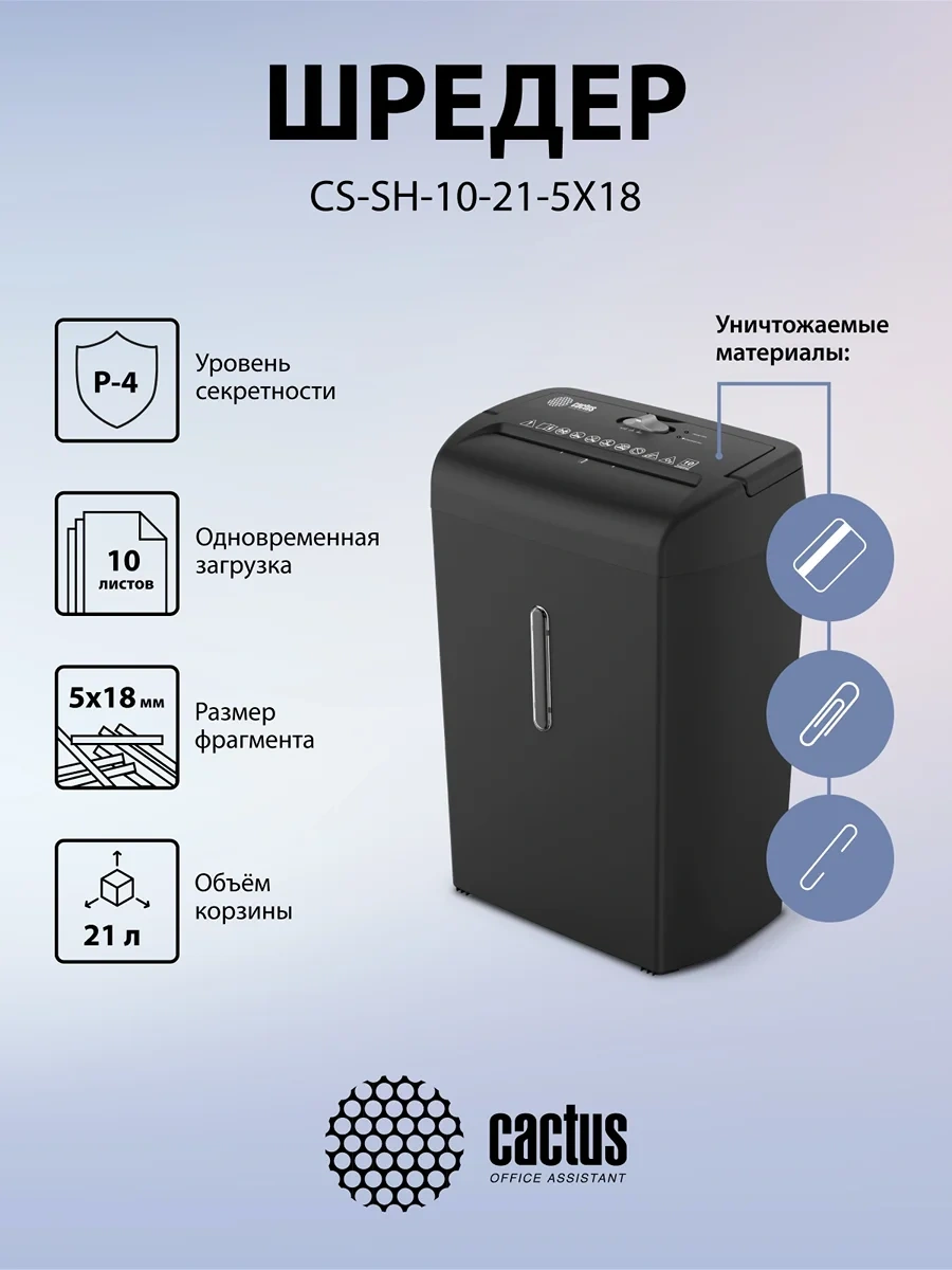 Шредер Cactus CS-SH-10-21-5X18 (секр.P-4) фрагменты 10лист. 21лтр. скрепки скобы пл.карты