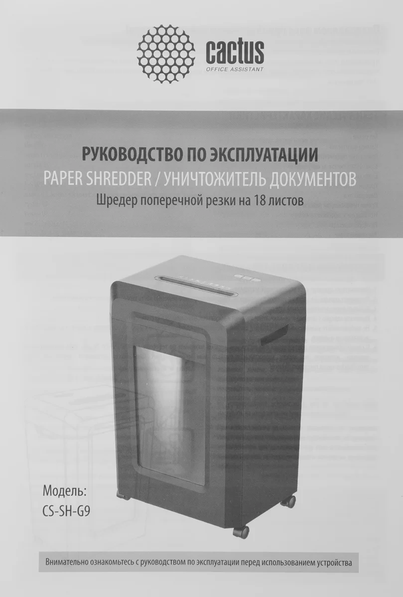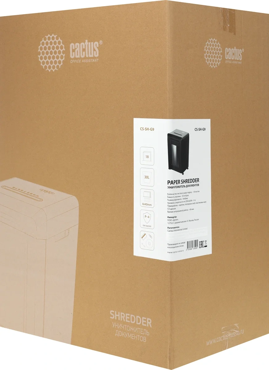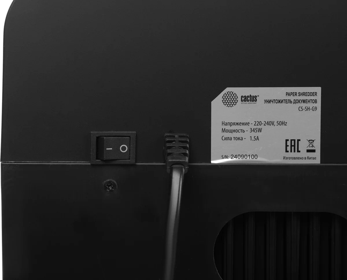 Шредер Cactus CS-SH-G9 черный (секр.P-4) фрагменты 18лист. 30лтр. скрепки скобы пл.карты CD