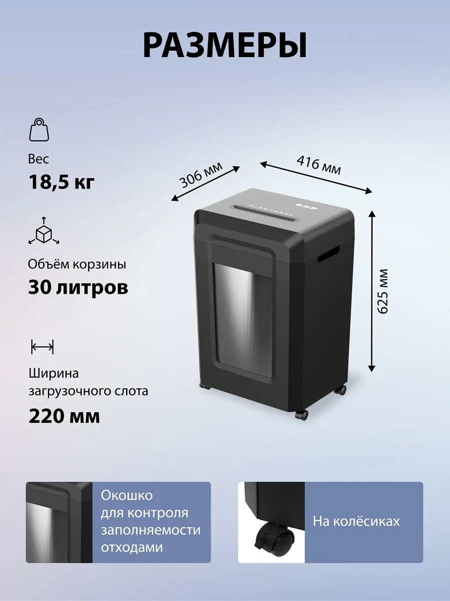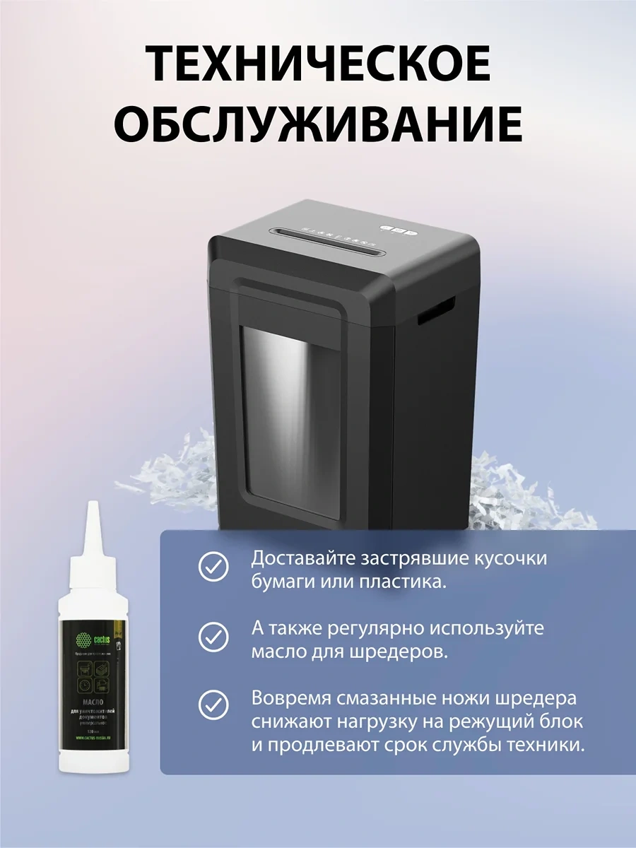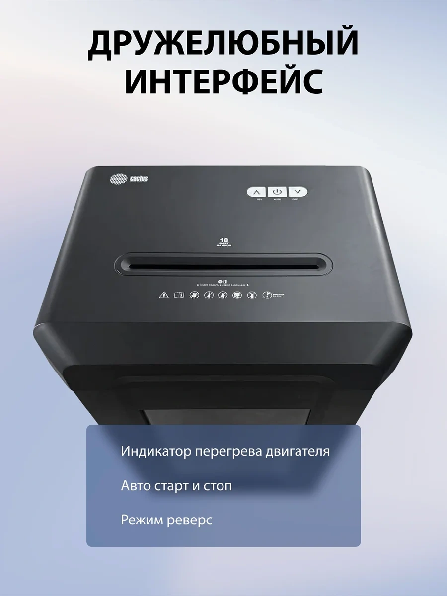 Шредер Cactus CS-SH-G9 черный (секр.P-4) фрагменты 18лист. 30лтр. скрепки скобы пл.карты CD