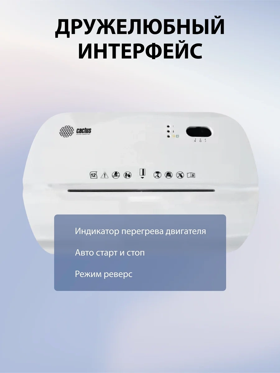 Шредер Cactus CS-SH-K4 белый/черный (секр.P-4) фрагменты 12лист. 17лтр. скрепки скобы пл.карты