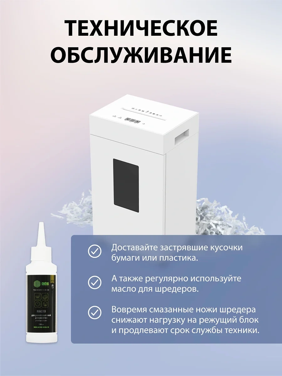 Шредер Cactus CS-SH-K9 белый (секр.P-4) фрагменты 15лист. 48лтр. скрепки скобы пл.карты