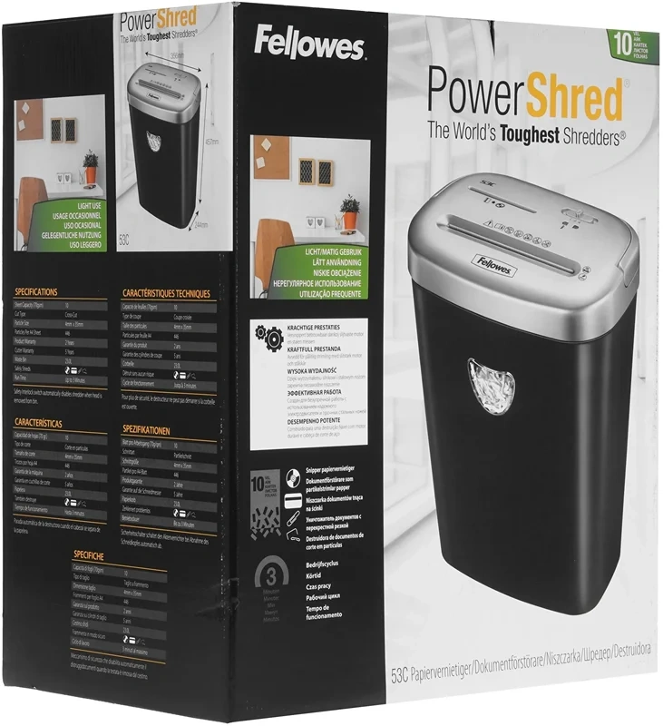 Шредер Fellowes PowerShred 53С черный/серый (секр.P-4) фрагменты 10лист. 23лтр. скрепки скобы пл.кар