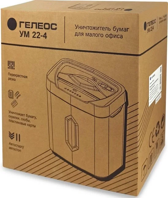 Шредер Heleos УМ22-4 черный (секр.P-4) фрагменты 14лист. 22лтр. скрепки скобы пл.карты CD