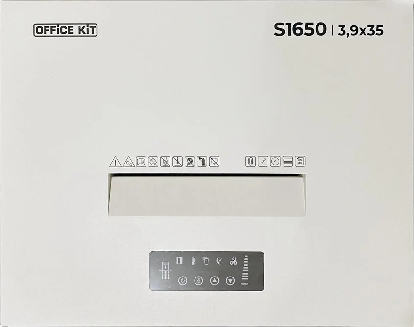 Шредер Office Kit S1650 3,9х35 белый (секр.P-4) фрагменты 35лист. 165лтр. скрепки скобы пл.карты CD