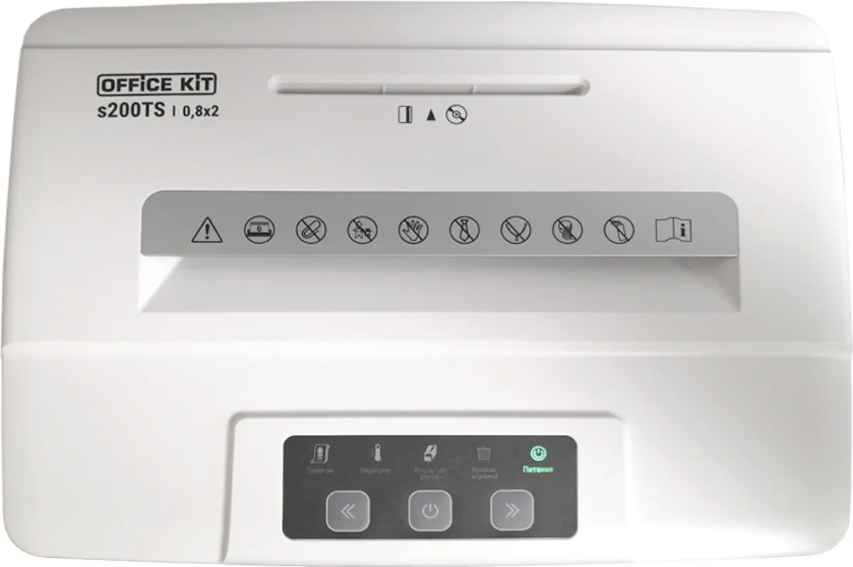 Шредер Office Kit S200TS 0,8x2 белый (секр.P-7) фрагменты 6лист. 25лтр. скобы пл.карты CD