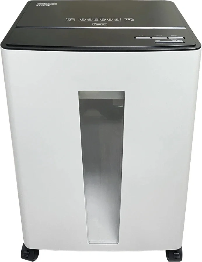 Шредер Office Kit S330SF (3,9х35) белый (секр.P-4) фрагменты 13лист. 30лтр. скобы пл.карты