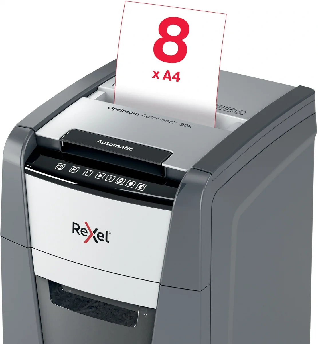 Шредер Rexel Optimum AutoFeed 90X черный с автоподачей (секр.P-4) фрагменты 90лист. 34лтр. скрепки с