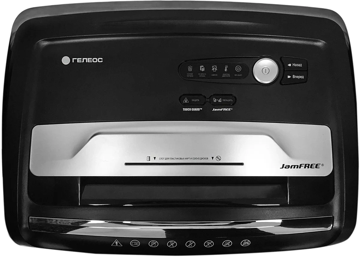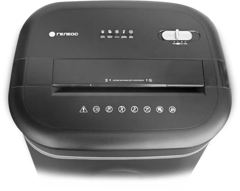 Шредер Heleos УП21-7+ черный/серебристый (секр.P-7) фрагменты 5лист. 23лтр. пл.карты CD