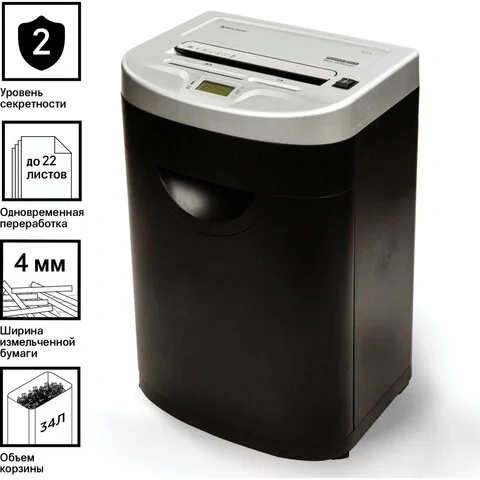 Офисный шредер Brauberg S22-S 22 листа, 35 литров, 2 уровень секретности