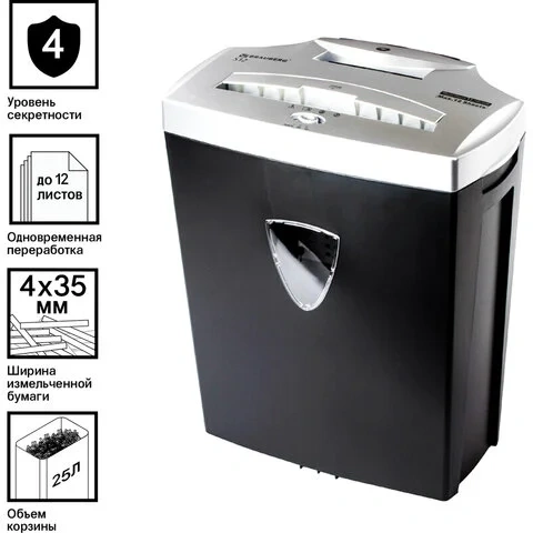 Офисный шредер Brauberg S12 12 листов, 25л, 4 уровень секретности