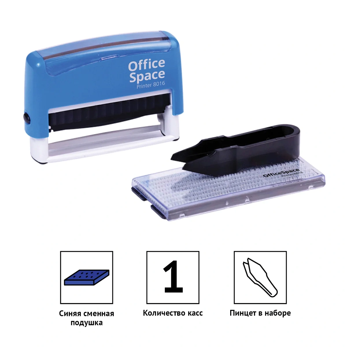 Самонаборный автоматический пластиковый 5-строчный штамп Berlingo 'Printer 8053'. Размер оттиска 58*22мм, оснастка с рифленой пластиной. Автоматическое окрашивание. Сменная штемпельная подушка в комплекте (срок годности сменной подушки - 6 лет, дата изготовления указана на упаковке). Легкая замена штемпельной подушки. Символы надежно закрепляются в текстовой пластине (две ножки). При замене текста рекомендуется заменить подушку. Используется для набора штампов с почтовыми, банковскими реквизитами и др. меняющейся информацией, без рамки. Усиленные двойные стенки выкатного механизма. Резиновые подушечки. Долговечность, благодаря металлической втулке. Пожизненная гарантия на механизм. В комплекте пинцет, 2 кассы букв, цифр и символов (3мм и 4мм). Упаковка - блистер с европодвесом.