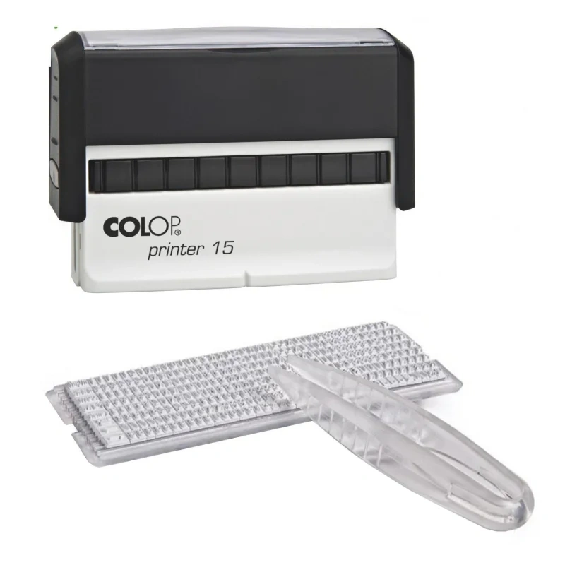 — Универсальная касса, А содержит на 33,3% больше букв, цифр и символов, чем у других производителей! Комплектация Colop Printer15-Set : — компактная и надежная пластиковая оснастка с автоматическим окрашиванием и рифленой пластиной 10×69 мм для набора 2 строк текста; — универсальная касса букв Type Set A (арт. 621847); — синяя сменная штемпельная подушка E/15 (арт. 73906); — пинцет; — упаковка — блистер.