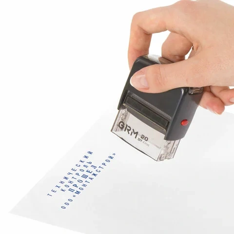 Используется в качестве информационного или адресного штампа. Позволяет при необходимости быстро изменить текст оттиска. Корпус штампа снабжен прозрачным верхним окном для идентификации оттиска. Штамп без рамки.