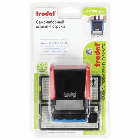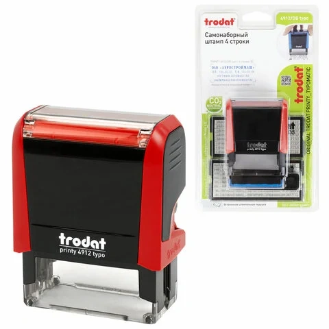 Штамп самонаборный 4-стр., 47х18 мм, синий, TRODAT 4912P4/DB, корпус КРАСНЫЙ, КАССЫ В КОМПЛЕКТЕ, 432