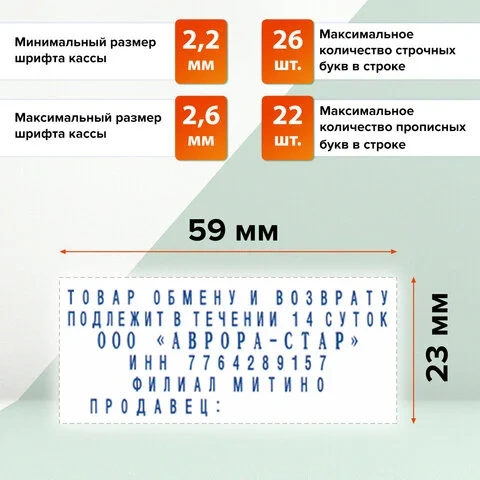 | Максимальный размер шрифта кассы | 3.1 мм |
