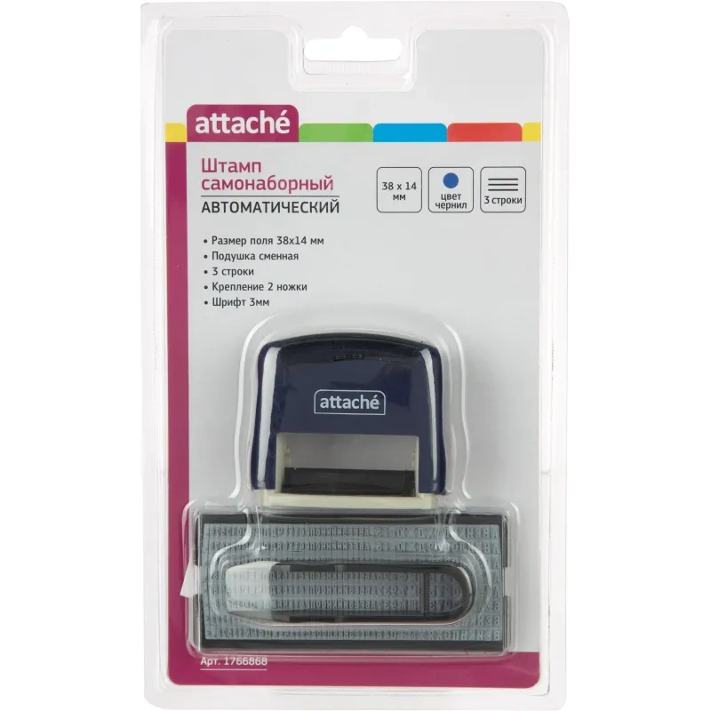 Штамп самонаборный Attache 1-3 стр. 38х14 синий 8051