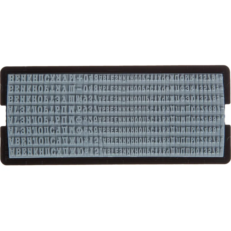 В комплект входит штамп с рифленой пластиной для набора текста.