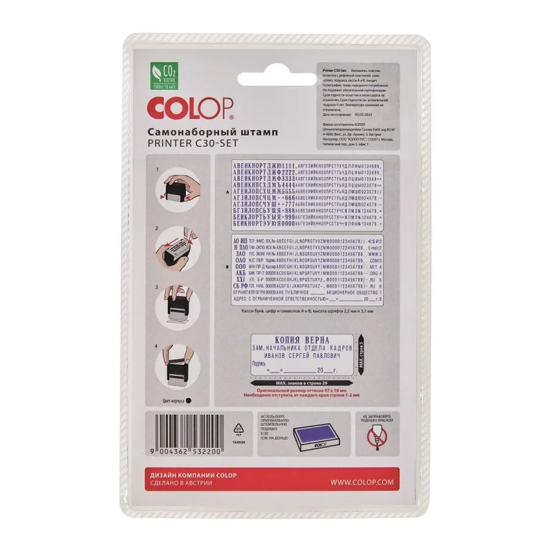 Самонаборные штампы очень популярны, функциональны, и просто незаменимы, когда нужно срочно создать или исправить штамп с наименованием, адресом, реквизитами компании или подразделения, с должностью и инициалами сотрудника и т. д. Это практично и удобно, так как не требует дополнительного изготовления клише, и экономит время. Нужный текст можно самостоятельно набрать при помощи пинцета и касс букв, цифр и символов, которыми комплектуются все штампы. Текст набирается зеркально справа налево на всем поле штампа или в его центральной части. От каждого края (справа и слева) необходимо отступить 1–2 мм, чтобы текст не выходил за границы пазов и равномерно окрашивался. При замене текста в самонаборных печатях и штампах рекомендуется заменять штемпельную подушку для гарантии четкого корректного оттиска.