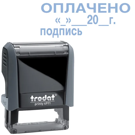 Штамп стандартных слов Trodat Printy ОПЛАЧЕНО дата подпись, 38х14мм, серый, 4911