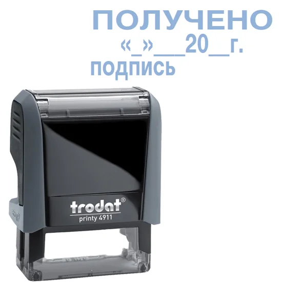 Штамп стандартных слов Trodat Printy ПОЛУЧЕНО дата подпись, 38х14мм, серый, 4911