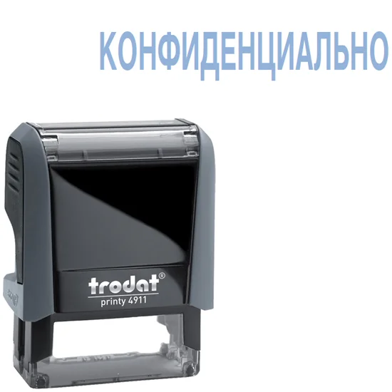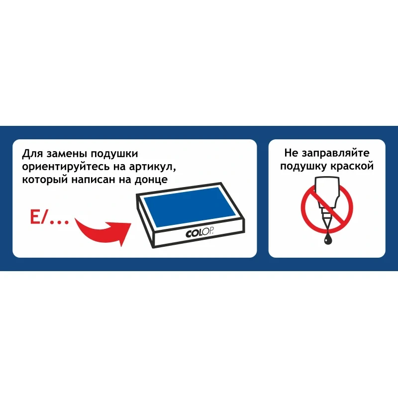 Размер оттиска - 38x14 мм. В комплект входит штамп и синяя сменная штемпельная подушка.