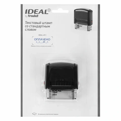 Штамп стандартный 'ОПЛАЧЕНО, дата', оттиск 38 х 14 мм, синий, TRODAT IDEAL 4911 DB - 3.13, 161489