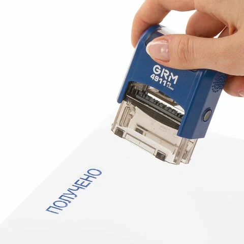 Штамп стандартный 'ПОЛУЧЕНО', оттиск 38х14 мм синий, GRM 4911 Р3, 110491170