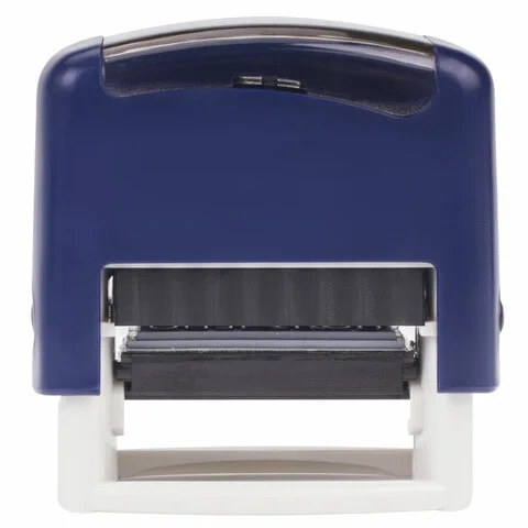 Клише штампа оставляет оттиск размером 38х14 мм синего цвета. Корпус изготовлен из качественного износоустойчивого пластика. Верхняя часть корпуса выполнена в темно-синем цвете, а нижняя часть - в светло-сером. Надежные фиксаторы, располагающиеся по бокам, позволяют удерживать подвижную часть штампа в статичном положении. В специальном прозрачном окне на верхней части корпуса располагается образец текста для его идентификации в процессе использования штампа. Замена подушки не составляет труда. На механизм распространяется пожизненная гарантия. Срок годности сменной подушки составляет 6 лет (дата изготовления указана на упаковке).