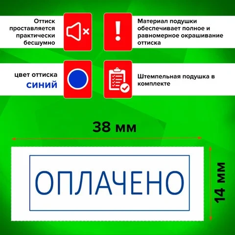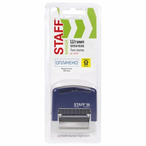 Штамп стандартный STAFF 'ОПЛАЧЕНО', оттиск 38х14 мм, 'Printer 9011T', 237421
