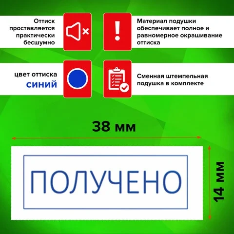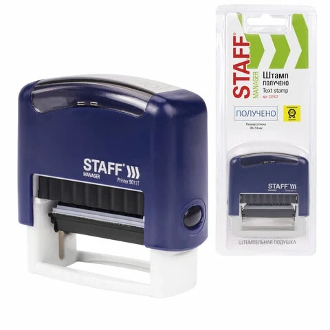 Штамп стандартный STAFF 'ПОЛУЧЕНО', оттиск 38х14 мм, 'Printer 9011T', 237422