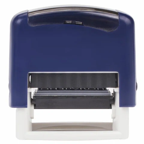 Клише штампа оставляет оттиск размером 38х14 мм синего цвета. Корпус изготовлен из качественного износоустойчивого пластика. Верхняя часть корпуса выполнена в темно-синем цвете, а нижняя часть – в светло-сером. Надежные фиксаторы, располагающиеся по бокам, позволяют удерживать подвижную часть штампа в статичном положении. В специальном прозрачном окне на верхней части корпуса располагается образец текста для его идентификации в процессе использования штампа. Замена подушки не составляет труда. На механизм распространяется пожизненная гарантия. Срок годности сменной подушки составляет 6 лет (дата изготовления указана на упаковке).