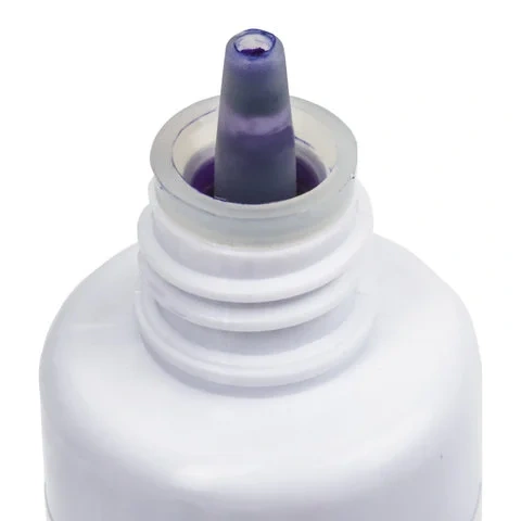 Оттиск штампа можно наносить на все виды бумаги, кроме глянцевой. Особенность данного продукта в том, что вокруг аппликатора имеется 'углубление', в которое попадает излишняя краска при использовании, что позволяет аккуратно заправить печати и штампы. Высококачественные чернила фиолетового цвета на водной основе. Время высыхания оттиска - 25 секунд. Удобный пластиковый флакон с дозатором. Объем - 30 мл.