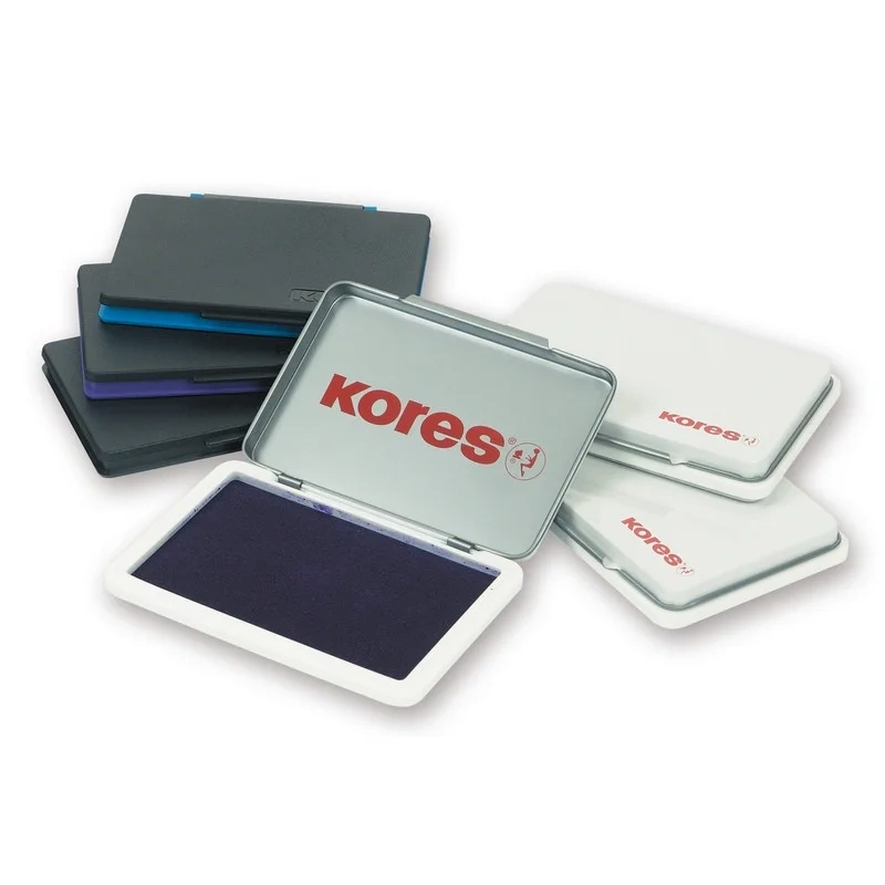 Штемпельная настольная подушка Kores 70х110мм, синяя, краска на водной основе, пластик