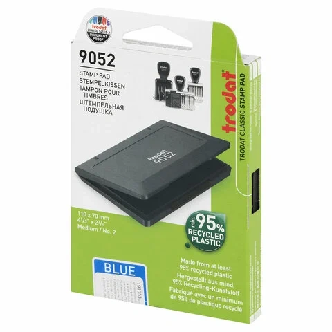 Штемпельная настольная подушка Trodat 110х70мм, синяя, краска на водной основе