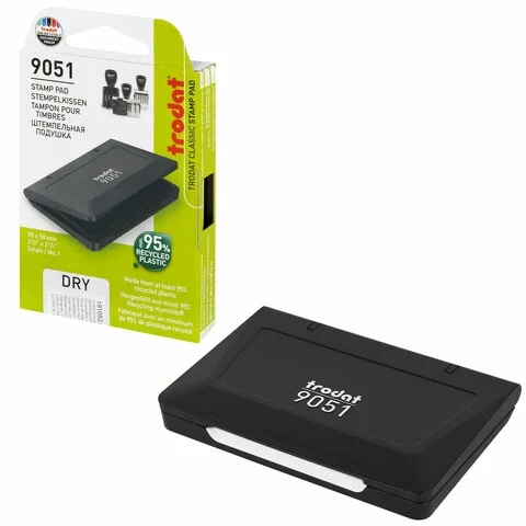 Настольная штемпельная подушка Trodat 9051 90х50 мм используется для окрашивания клише печатей, штампов, факсимиле, датеров и нумераторов, закрепленных на не автоматические штемпельные оснастки ручного типа. Подушку рекомендуется заправлять красками Trodat на водной основе или на спиртовой основе. Наличие крышечки, обеспечивает чистоту и мобильность во время перемещения. Подушка не заправлена.