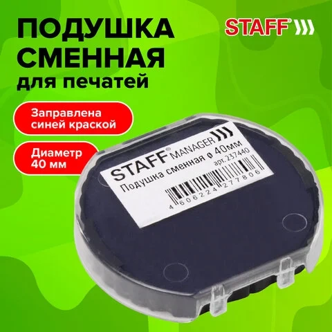 Подушка сменная STAFF, D=40 мм, для самонаборных печатей 'Printer 8010', '8015', '8020', синяя, 2374