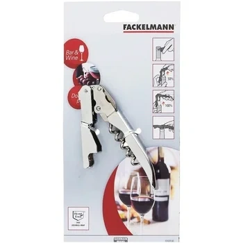 Штопор профессиональный Fackelmann — это универсальный винный аксессуар. Он удобен и прост в обращении. С его помощью также можно срезать капсулу с бутылки, откупорить как винные пробки, так и прижимные. Двухступенчатый штопор более удобен в обращении за счет того, что открывание бутылки осуществляется в два этапа. Сначала происходит сдвиг пробки, а затем уже ее извлечение. Самое главное — штопор достаточно компактный и не займет много места при хранении. А еще его можно взять с собой на дачу или пикник. Штопор также отличается стильным исполнением и современным дизайном.