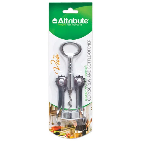 Штопор-открывалка, 2-х рычажный, хромированный, блистер с европодвесом, 'Viva', ATTRIBUTE, ATV614, A