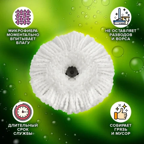 Швабра для наборов для уборки с круглой насадкой из микрофибры, черенок 130 см, LAIMA, 606745