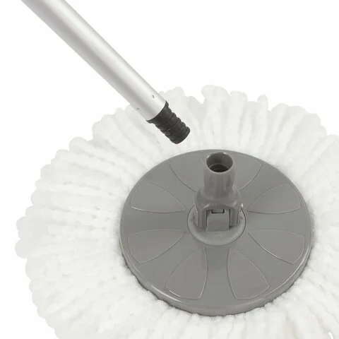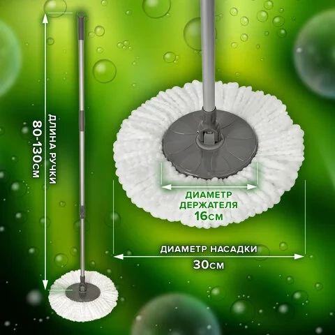 Швабра является идеальным вариантом для уборки всех видов полов. В комплекте отсутствует ручной отжим, он осуществляется только с помощью центрифуги. Возможность менять насадки делает швабру универсальной и подходящей для длительного использования. Телескопическая ручка помогает убираться в труднодоступных местах квартиры, чтобы очистить их от пыли и грязи.