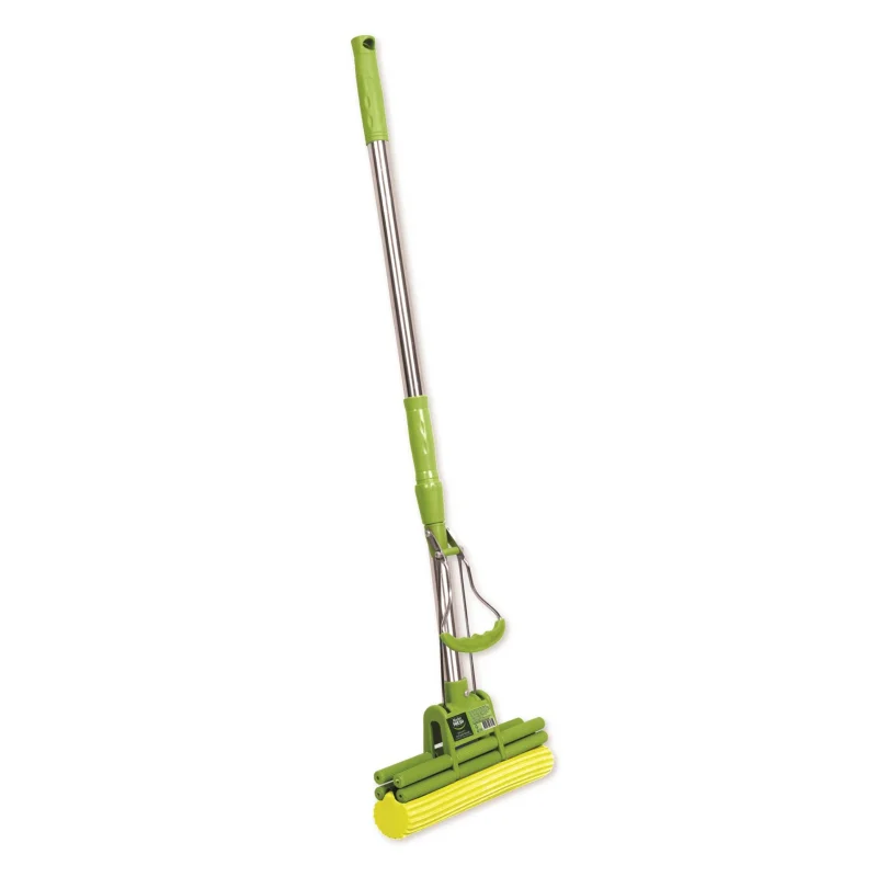Телескопическую ручку можно настроить под Ваш рост, а отжимной механизм на швабре позволяет не касаться загрязненной поверхности губки, что делает процесс уборки легким и приятным.