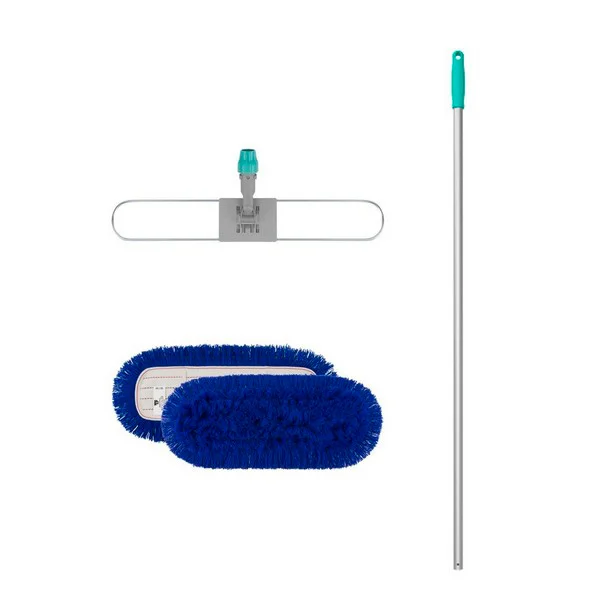 Швабра для сухой уборки полов. При скольжении швабры по полу создается электростатический заряд, который хорошо притягивает пыль. Ворс мопа сделан из акрила и допускает стирку при температуре до 60 °С.