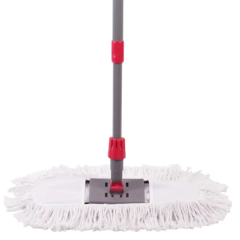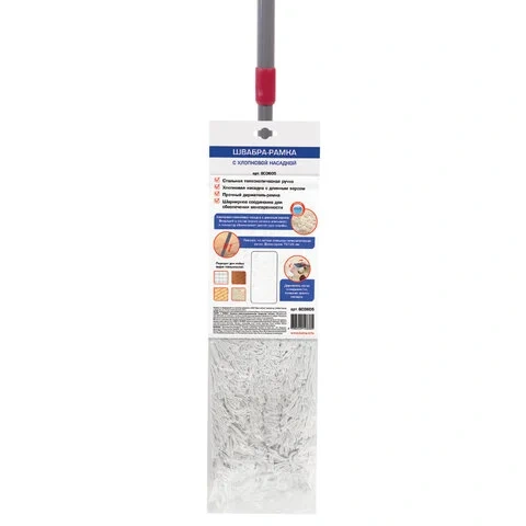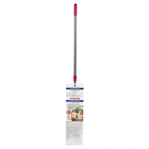 Держатель складывается, позволяя надевать и снимать насадку. Алюминиевая телескопическая ручка, шарнирное соединение обеспечивают удобство при использовании и помогают пробраться в дальние уголки и труднодоступные места квартиры, чтобы очистить их от пыли и грязи. Крепление черенка – резьба 2,2 см со стяжной гайкой. Насадка выполнена из хлопка, держатель - из металла и пластика. Длина телескопической ручки из алюминия – 80-125 см. Длина рабочей части – 40х10 см. Вес – 540 г.