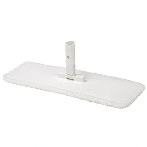 Снизу по периметру основания швабры есть специальные пластиковые крючки, к которым быстро и надежно крепится насадка из микрофибры, оснащенная липучками.