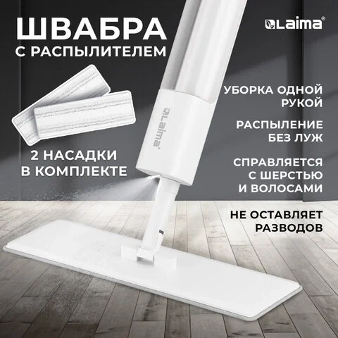 Швабра с распылителем NeoSpray luxe, 2 насадки T-Clean из плотной микрофибры, скребок, LAIMA, 609147