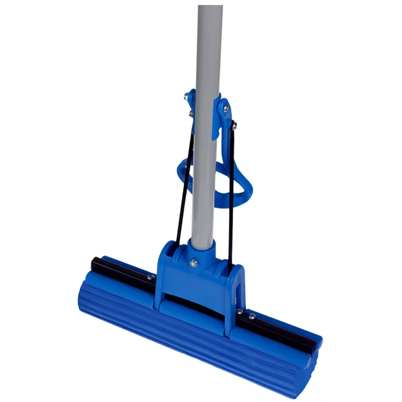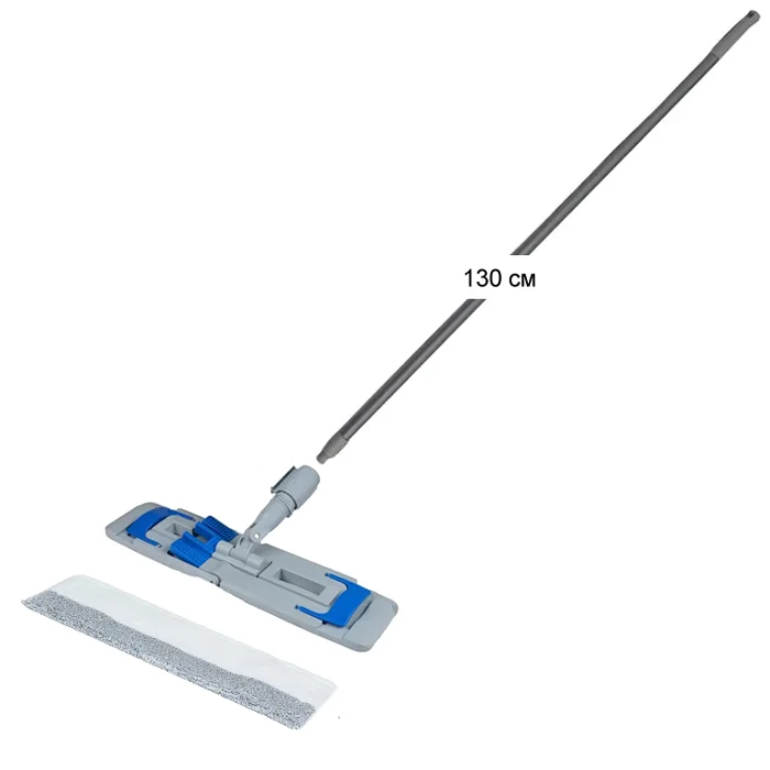 Удобный механизм телескопической ручки позволяет фиксировать две части в раздвижном положении, препятствуя самопроизвольному сложению. Рукоятка швабры имеет пластиковый наконечник с отверстием для подвешивания на крючке. Швабра легко отжимается поднятием рычага вверх, а специальный роликовый отжим исключает контакт рук с водой и моющими средствами.